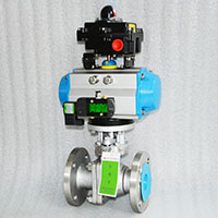 電動(dòng)V型開關(guān)球閥閥芯上開有V型切口,與硬密封閥座相對(duì)轉(zhuǎn)動(dòng)產(chǎn)生剪切力,可將限位切斷,防止卡死。具有流通能力大,調(diào)節(jié)精度高,可調(diào)比大,密封性能好等特點(diǎn)。特別適用于泥漿和含有纖維性介質(zhì),以及含有微小固體懸浮物介質(zhì)的調(diào)節(jié)。